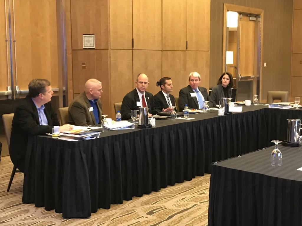 The final day of the Georgia Cyber Delegation’s visit took place at the Hotel at Arundel Preserve where the Fort Meade Alliance’s Tim O’Ferrall moderated a panel on the opportunities and challenges of doing business at Fort Meade with two prominent members of the cyber region, Bill Dunahoo of Praxis Engineering and Ron Fodor of Leidos. Education and workforce development were highlighted during a second panel discussion. The group included Brian Loggins of Northrop Grumman Mission Systems, Greg Simmons of the University of Maryland, Baltimore County (UMBC), Greg Von Lehman and Kelly Wilmeth of the University of Maryland University College (UMUC) andTom Sadowski of the University System of Maryland. The key takeaway formed from the discussion was the need for the industry to invest and partner with academia in order to grow the local cyber workforce.