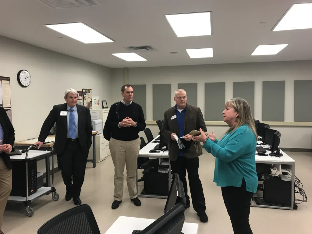 The group’s last stop was a tour of the Cyber Center at the Anne Arundel Community College (AACC), an NSA recognized Cyber Center of Excellence. Dr. Lance Bowen, Dean of Science and Technology, highlighted cyber education certifications and AACC’s Workforce Development Consultant Melanie Koorey discussed training development.
